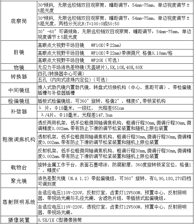 透反射、单偏光观察、正交偏光观察、锥光观察、晶相观察、明视场观察、可自由切换目视观察与显微摄影